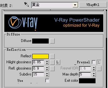 而材质2应设定为黄金材质,材质参数设置如图22-8所示。