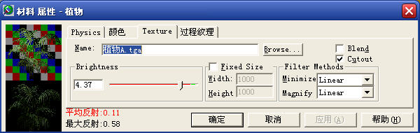 B.如果你既想保留材质的基本效果,同时又不想失真过于严重,也可以尝试着降低贴图的显示亮度,通过降低亮度再进行光影追踪测试有时也能适当缓解这个问题。参数设置如图