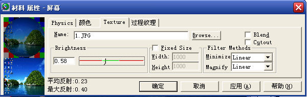 经过再一次的测试,发现贴图已经完全正常了。但是这种方法也有副作用,你为表面设置的任何材质效果不再起作用,而用也不受光了,所以要小心使用。