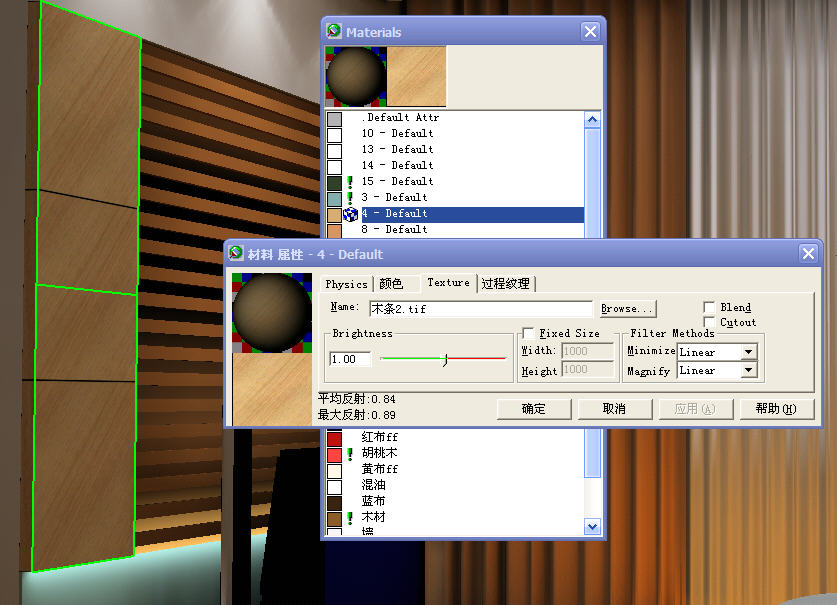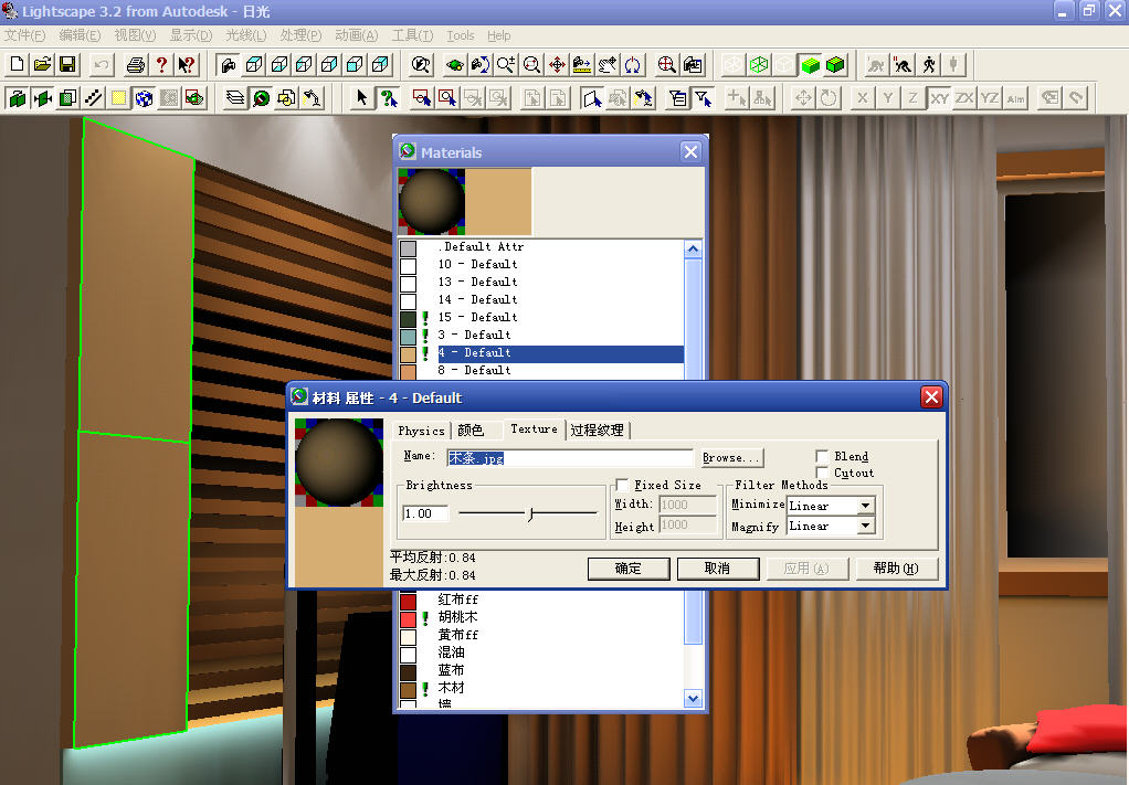 本例我将“木条.jpg”文件送入PS中另存为“木条2.tif”文件,重新进行尝试。结果Lightscape就可以正常识别了。如果你的文件还不能显示,大家照这个思路再多试几次,一般都能搞定。最终解决效果如图19-5所示。