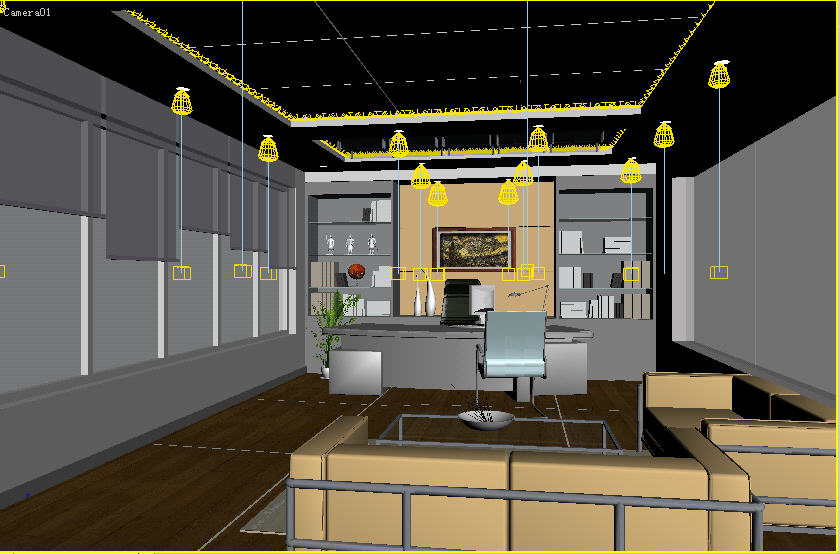 从图中就可以明显看出,由于场景中光线散发出的光子没有反弹,所以造成受光的区域比较亮,而背光的区域漆黑一片,这样的效果是不符合我们的预期的,而且也是不符合现实规律的,因为自然界中的光线都是有反弹的。接下来我们就要利用3dsmax内置的光能传递引擎来模拟真实的全局光照(GI)效果。