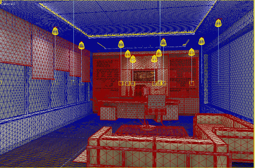 使用这种方法是最简单也是最粗糙的,它不分青红皂白对场景中的所有实体模型都进行统一的均匀细分,虽然操作速度最快,但细分的效率是最差的,因为它忽略了不同对象之间所存在的巨大差异。