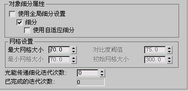 上述介绍的方法由于没有考虑到场景中的每个对象的特殊实际情况,对网格模型细分上搞一刀切,既浪费了时间而且求解效率也很低下。如果采用局部细分法则可以达到速度与质量上的一定平衡,它仅对场景中的需要细分的对象增加细分值,而对不需要的对象不用细分,这样计算速度会大大提高,而且重点突出,便于修改。值得注意的是,如果你设置了局部细分,就不再需要设置全局细分了,二者不要同时设置。