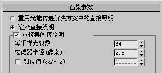 (3)展开“渲染参数”面板,勾选“重聚集间接照明”选项,其它所有参数暂时保持默认,参数设置如图16-3所示。