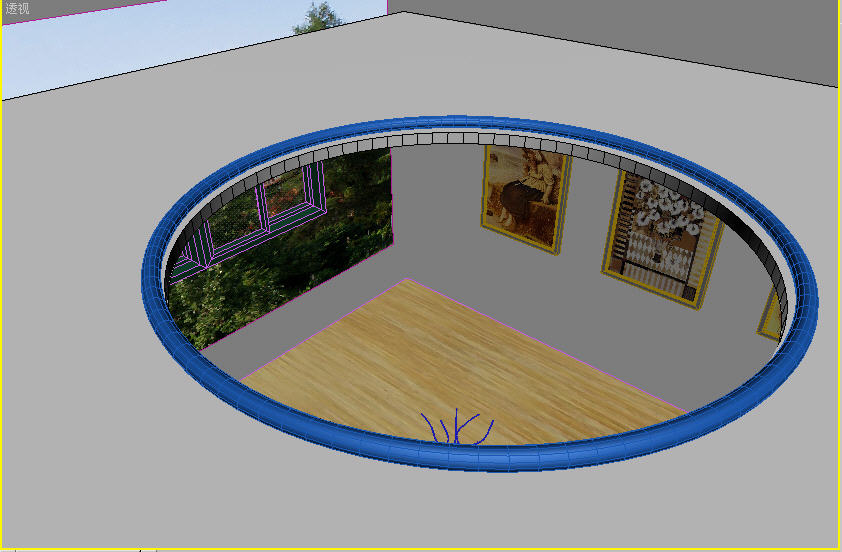 2.用与本系列教程第一篇中介绍的相同方法,沿着暗藏灯的大体位置绘制出一条二维样条曲线,由于本例是个圆形暗藏灯,因此我们直接用circle命令绘制出一个圆形即可,并且设置它的可渲染性,以保证它在最终渲染时是有效的,线条厚度适中即可,创建后的模拟灯带模型如图13-3所示。