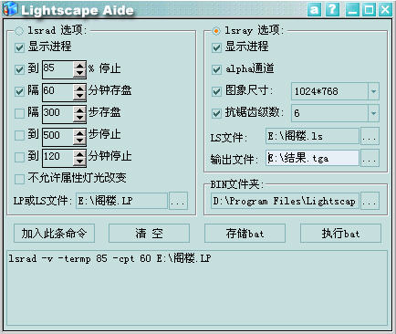 LP或LS文件:指定你要进行光能处理的原始文件。在这里我假定光传的是E:\阁楼.LP文件,参数设置参考如图17-4所示。