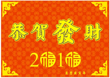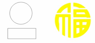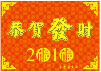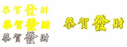1) 先把文字“恭喜发财”轮廓加粗5毫米同时把轮廓转为对象后填充黄色;再把”恭喜发财”文字轮廓加粗3毫米,在转为对象,填充咖啡色后得到: