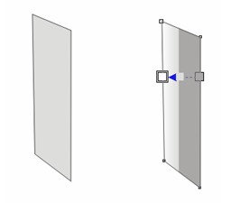 3) 从正面矩形复制一份,宽度压细,高度不变。利用交互式填充工具调整如下图形: