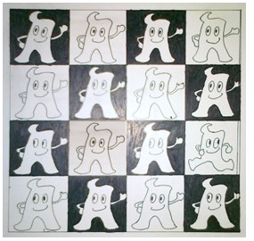 基本形重复:在设计中连续不断地运用同一元素反复排列,称为基本形重复。重复基本形可以是绝对的重复,也可以有方向、角度、正负及位置等方面的相对重复。如图所示: