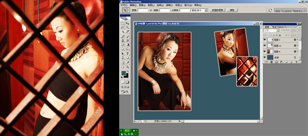2、打开原图素材图1-3,Ctrl+T自由变换——缩放——旋转,复制图层样式。如图:1-4