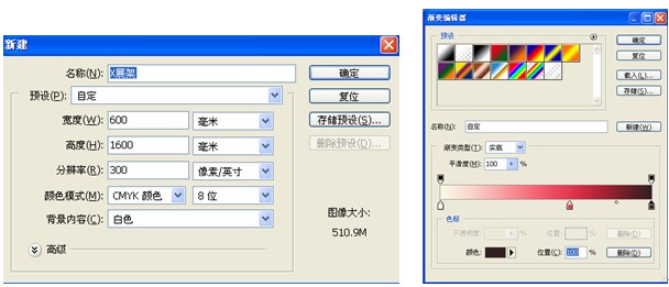 1) 新建文件,尺寸如图,并使用渐变工具填充渐变色,颜色设置如下图所示: