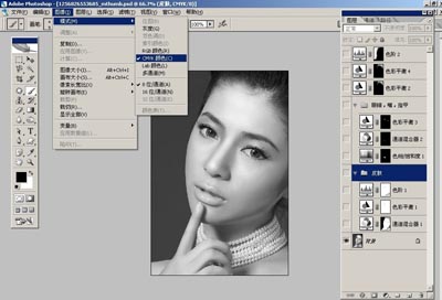 1、打开素材,将图片由灰度模式转成CMYK模式。如图1-1