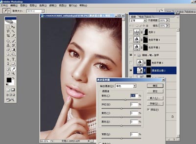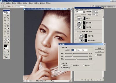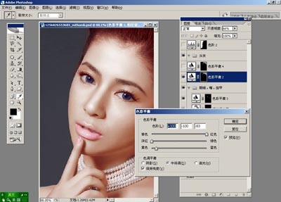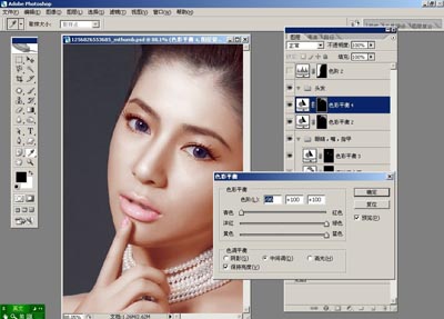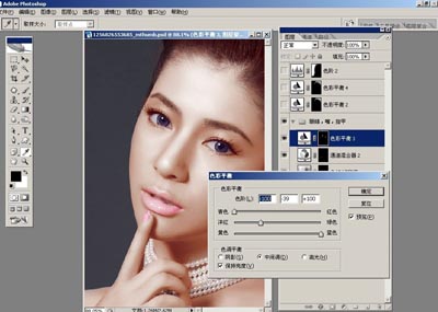 10.发现调整完后头发有点偏红,所以我们在一次利用调整图层——色彩平衡命令进行调节.如图1-12。