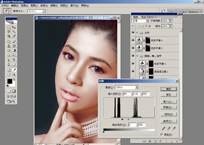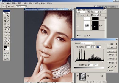5.最后在用调整图层——色阶命令对亮度进行调节即可,如图1-7。