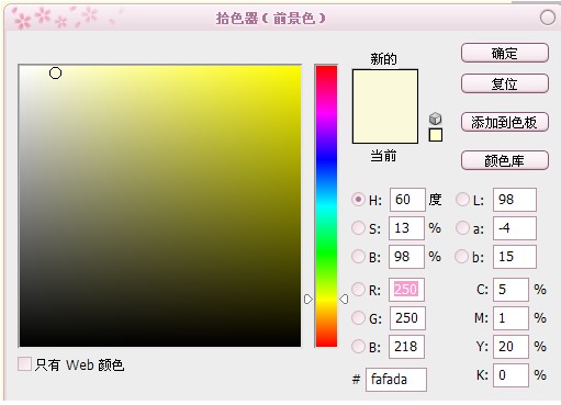 2) 设置前景色为R=250,G=250,B=218,填充前景色(ALT+DELETE),如图所示: