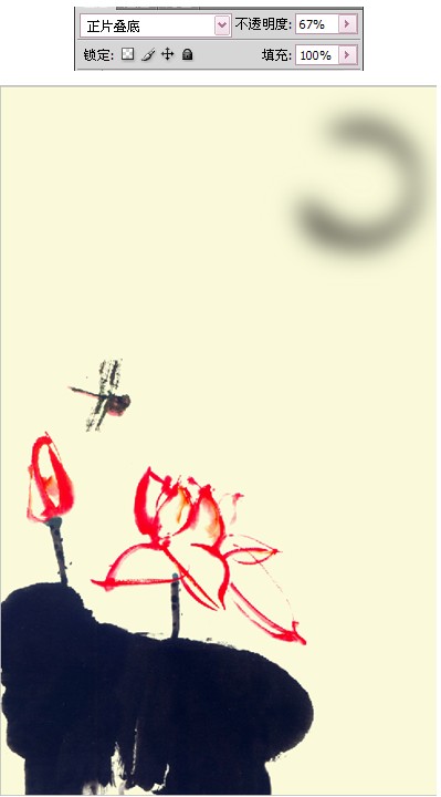 4) 从网络中找适合的墨水圈素材,适当降低不透明度和图层1做正片叠底效果,如图所示: