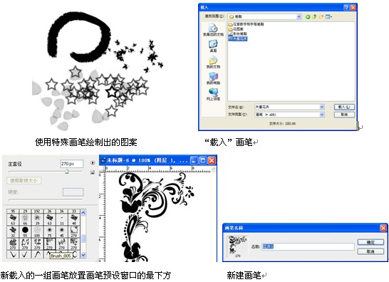 执行“载入画笔”命令后,弹出“载入”对话框,在其中选择画笔文件,确定对话框后,新增的一组笔画将放置在画笔预设窗口的最下端。