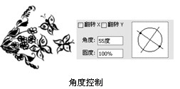 4)角度:用于定义画笔长轴的倾斜角度,可以直接输入角度,或是用鼠标拖动右侧预览图中的水平轴或垂直轴来改变倾斜角度,如图所示。
