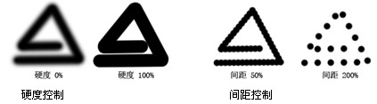 2) 硬度:设置画笔边缘的柔化程度,数值越高,画笔边缘越清晰,如图