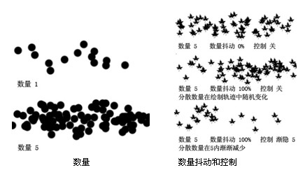 2)数量:指定画笔在绘制线条的过程中,分散色点的数量,如图所示。