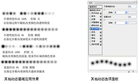 设置画笔在绘制线条的过程中,颜色的不透明度和流量,如图5-37所示。“其他动态”选项面板如图所示。