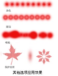 在画笔调板中还有5个选项,这些选项没有相应的数据控制,只需用鼠标单击名称前的方框将其勾选即可使用效果。应用效果如图示。