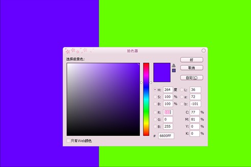 3)新建“图层1”,设置前景色RGB为(102、0、255),选择工具箱“矩形工具”