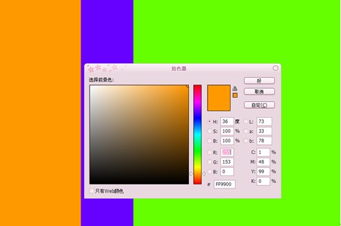 4)新建“图层2”,设置前景色RGB为(255、153、0),继续绘制矩形。