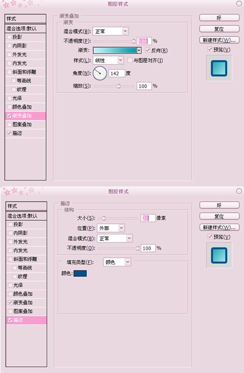,选择“渐变叠加”命令,设置色标颜色RGB值为(11、152、165),右边颜色RGB值为(190、244、250),其他参数设置如图所示: