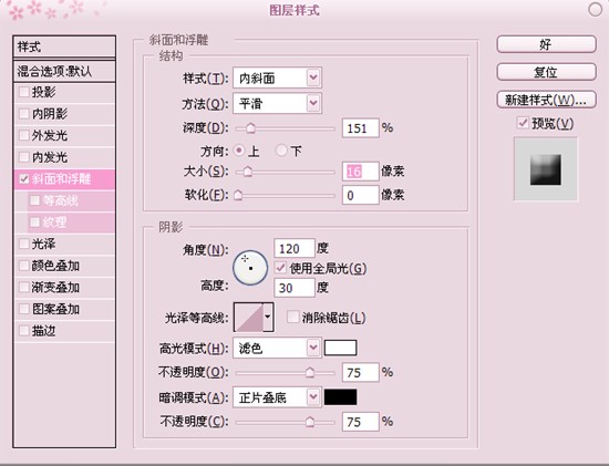 11)双击图层上的该图层选择“斜面和浮雕”命令,加已编辑果如图所示: