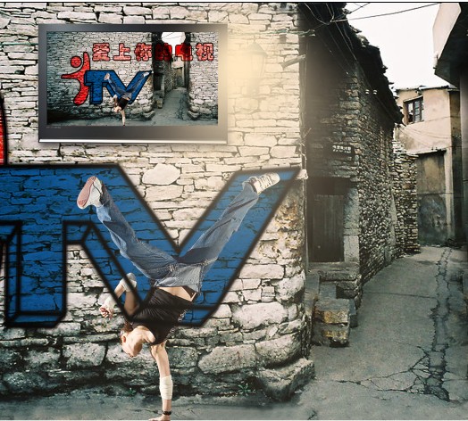 9)把前面做好的画面效果放到电视图片上,所得效果如图所示: