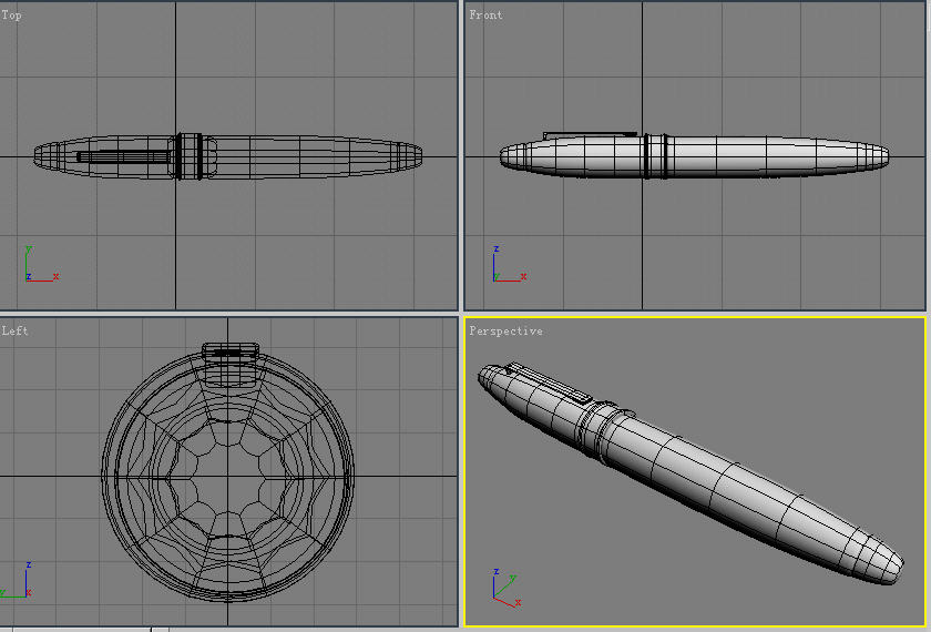 至此,整个钢笔模型的建模工作就完成了,下一节我们来用Vray渲染器来完成钢笔材质的制作及最终渲染。