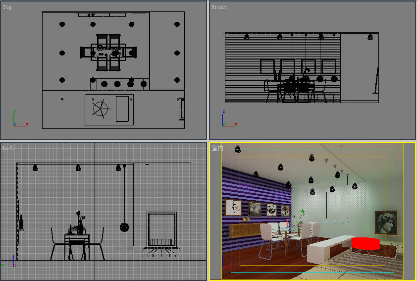 (1)首先我们打开一个已经制作好的场景效果,这个场景是用什么渲染器所制作的并不重要,因为我们在这里所探讨的是色彩通道的输出。这里以一个光能传递的案例来讲解,如果你是用Lightscape 或者是用Vray来表现,其实道理都是一样的,场景效果如图1-1所示。