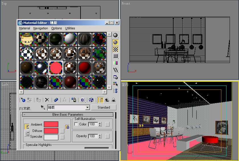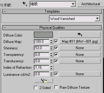 (5)选择场景中的地板,在材质编辑中找到它所对应的材质,我们以地板为例来进行讲解,原始材质效果如图1-3所示。