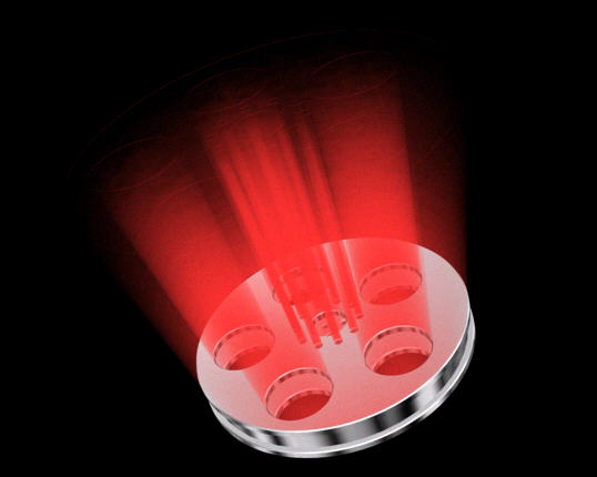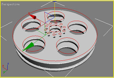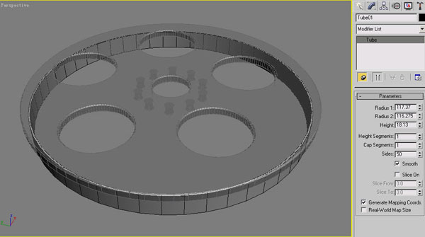 (3)建立一个圆管状物体,注意中间部分是漏空的,将其放置在胶片版的下方。由于本案例参数全部由读者自行设定,因此这里只给出参考效果,如图1-3所示。