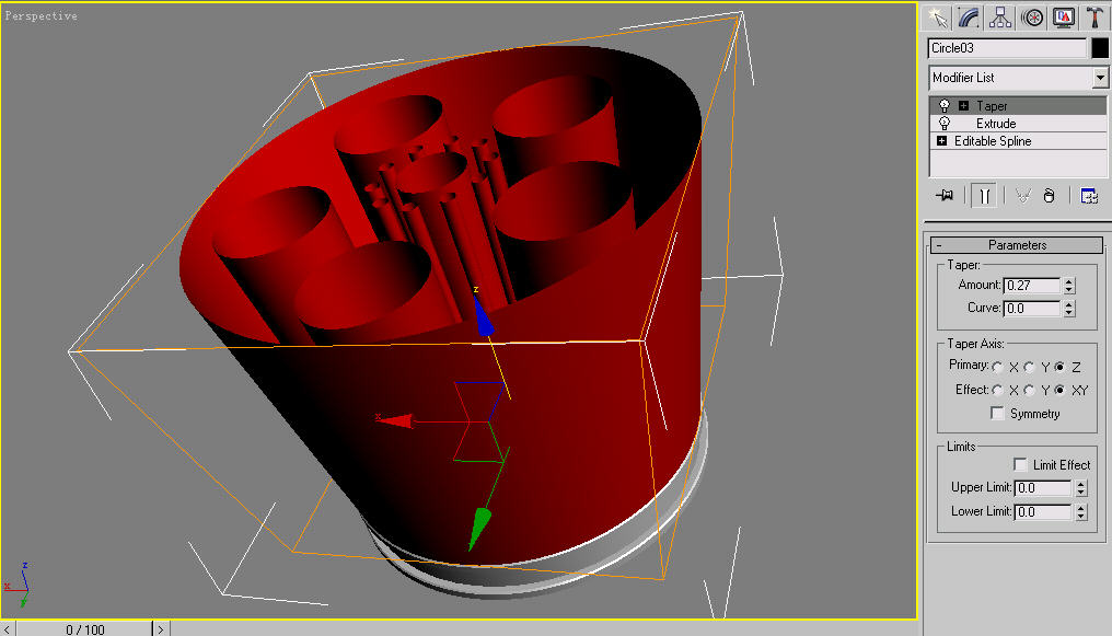 (7)对挤出的模型加入锥化修改器,制作放射状的效果,如图1-7所示。