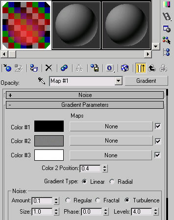 (9)为其不透明通道加入一张“Gradient”渐变贴图,参数设置如图1-9所示。大家还可以对黑白的位置进行调节,自己控制透明的程度。