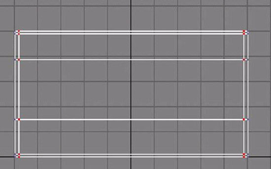 (3) 在Edit Poly (编辑多边形)命令中选择Vertex(点)编辑模式,选择中间部分的两排点,用缩放工具将两排的点向两边缩放,目的是为了以后加入Mesh Smooth(网格光滑)命令让边缘看起来棱角方一些,如图4-3。