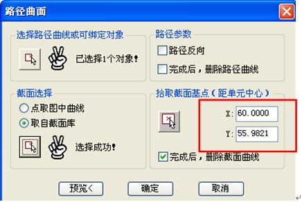 其中:路径为洋红色的封闭多段线,截面取自截面库