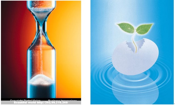 透明的物体大都表面经磨砂工艺处理。反光性、透明性较弱,高光强烈。比如:在水形成冰的过程中、其内部结构发生了变化,在受光线的照射时产生漫反射,将会在表面上形成不规则形状的明暗区域产生光怪陆离的反射效果。水在静止时,清澈透明表面平整如镜,如果在波动或流动的情况下,将会产生波光粼粼的反射效果。这些物体由于具有透明性、其色彩往往透射出它所遮挡的部分或背景的色彩。如果透明物体本身有颜色的话,在表现其质感时则需要考虑到本身的固有色和背景色之间的关系。如透明的玻璃、水、冰块、透明或半透明塑料等。如下图: