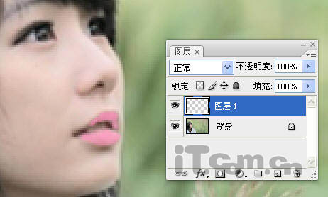 | 4、设置图层1的混合模式为“强光”,不透明度为“70%”,如图所示。这样嘴唇的会色调更红润。 |