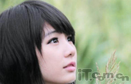 | 9、由于设置对比度后,头发的细节消失了,所以要把它调回来。在图层面板中单击“添加图层蒙板”按钮,然后使用黑色的“画笔工具”涂抹人物的头发即可,如图所示。 |
