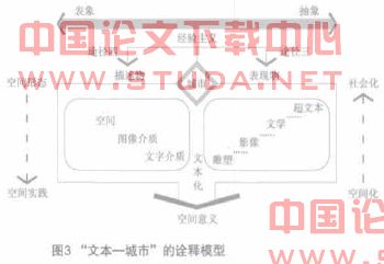 我们可以归纳出如图3所示的文本诠释框架模型。这是一个统括性的概念模型,从文本描述物到文本表现物的空间表现要素在这个模型框架中清晰可见。从描述物到表现物的文本“替代物”指涉了从表象到抽象的所有介质类型。其中,描述物的文本介质包括具体空间、图像介质、文字介质等,即从空间形态到空间实践的诠释过程;表现物的文本介质包括雕塑、影像……文学等,即从空间化到社会化的文本认知过程。如果我们注意到这些文本介质的表现的内在机制,就会发现我们在参与、解读、实践空间的过程中是“有意无意”的通过对这些“文本介质”的“中介的”诠释而激发创作情感的(图3)。