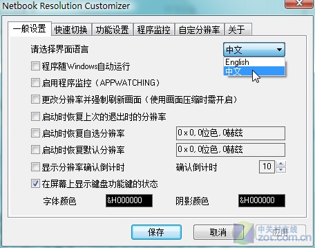 通过设置功能可自定显示分辨率、切换快捷键等