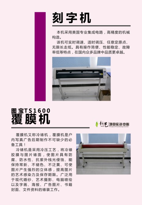 新艺项目实训中心部分教学设备:刻字机\覆膜机