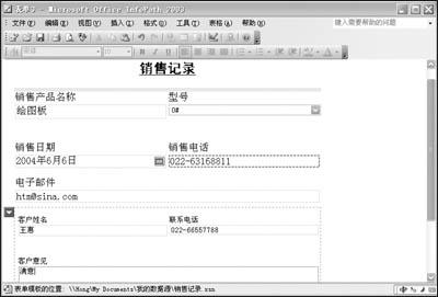 在创建表单前,首先对表单中的内容和版式进行策划,这样我们做出的表单即美观又完整。例如在创建“销售记录”表单前首先对需要创建的销售记录表单中的内容进行策划,该表单内容包括:表单名称、销售日期、销售产品名称型号、销售电话、电子邮件、客户信息等内容。根据表单的具体内容下面我们就可以设计表单了。